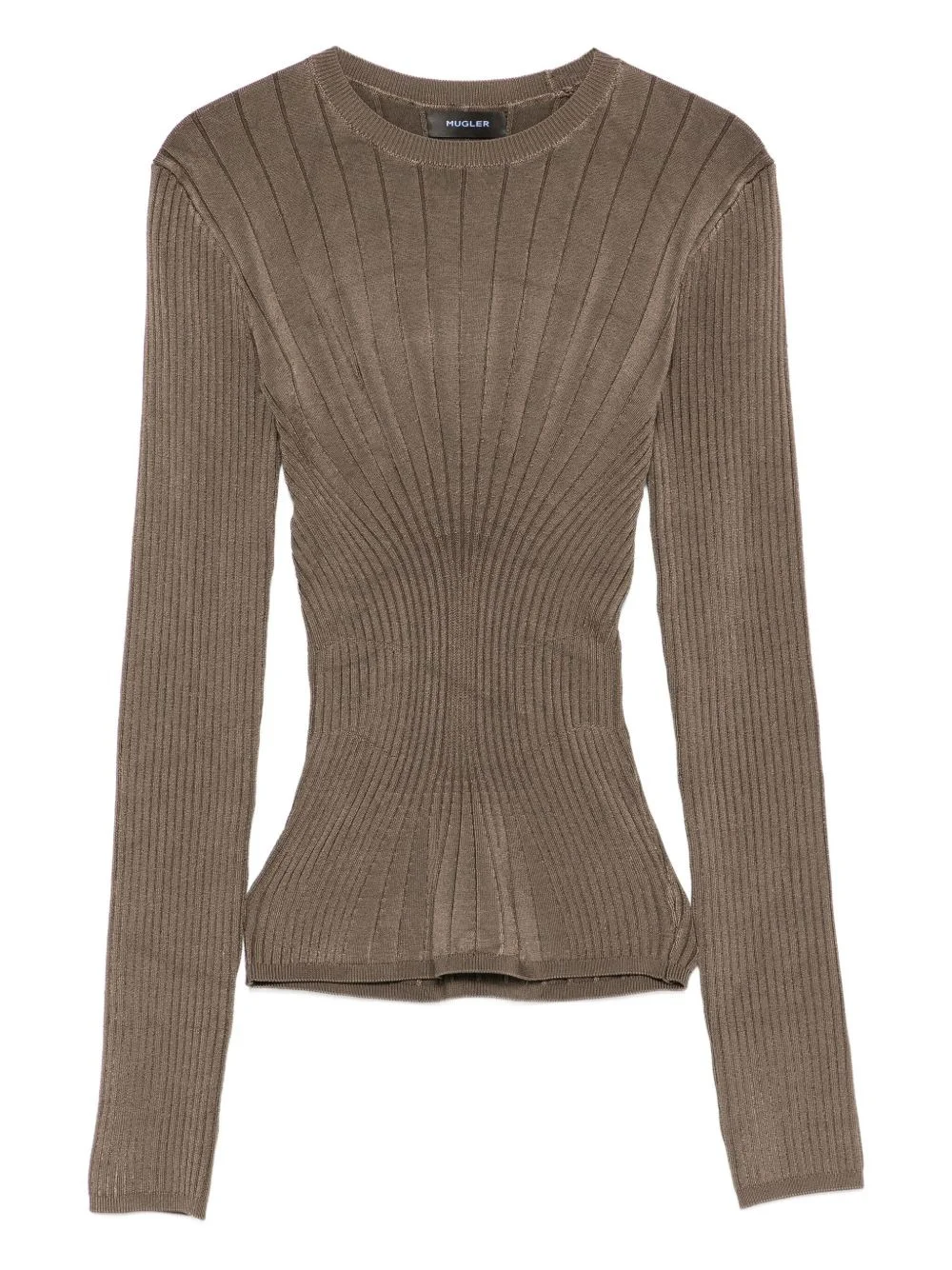 ribbed round-neck sweater Highlights - Mocha brown - Ribbed texture - Round neck - Long sleeves Imported Composition Rayon 87%, Nylon 11%, Elastane 2% SIZE & FIT Model measurements Height 5 ft 10 in(1.77 m) Bust/Chest 32.28 in(82 cm) Hips 35.03 in(89 cm) Waist 25.19 in(64 cm) Washing instructions Machine Wash