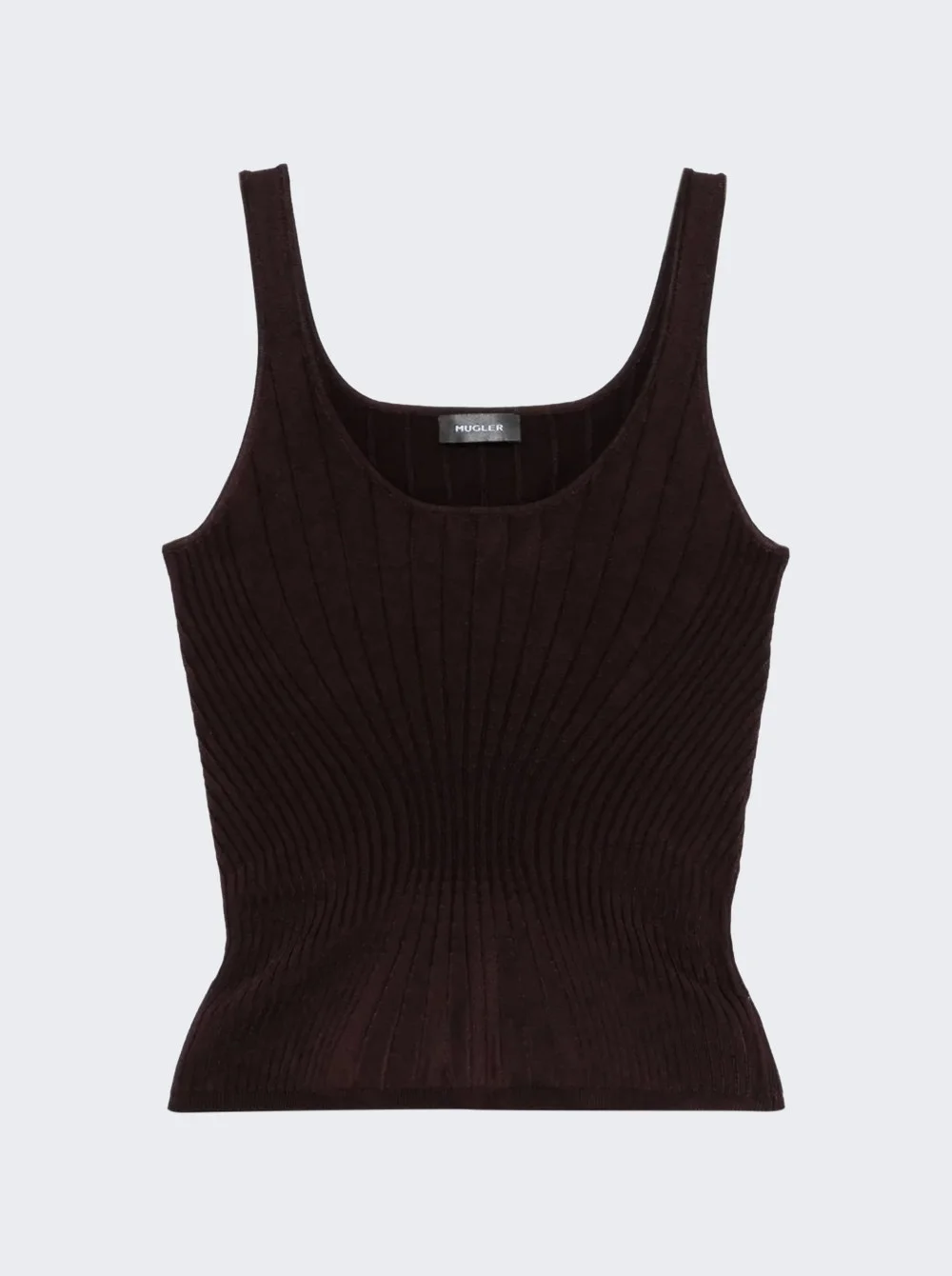 Details - Fitted knitted silhouette - Open neckline - Wide straps - Body sculpting effect - Care according to label - Material: 87% Rayon, 11% Nylon, 2% Elastane Size Information: Vendor Color Code: Brand Style: 25F2TO07171128 Designer/Brand: MUGLER