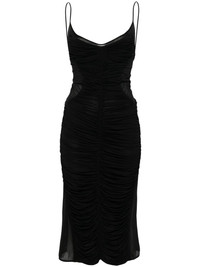 ruched midi dress Highlights - Black - Concealed rear hook and zip fastening - Semi-sheer panels - U-neck - Spaghetti straps Imported Composition Viscose 100% SIZE & FIT Model measurements Height 5 ft 11 in(1.8 m) Bust/Chest 32.67 in(83 cm) Hips 36.22 in(92 cm) Waist 24.4 in(62 cm) Measurement LENGTH 43.3 in(110 cm) FittingInformation Designed for a close fit throughout Made from a midweight non-stretch fabric, this piece offers minimal elasticity when worn