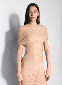 nude sheer ruched dress