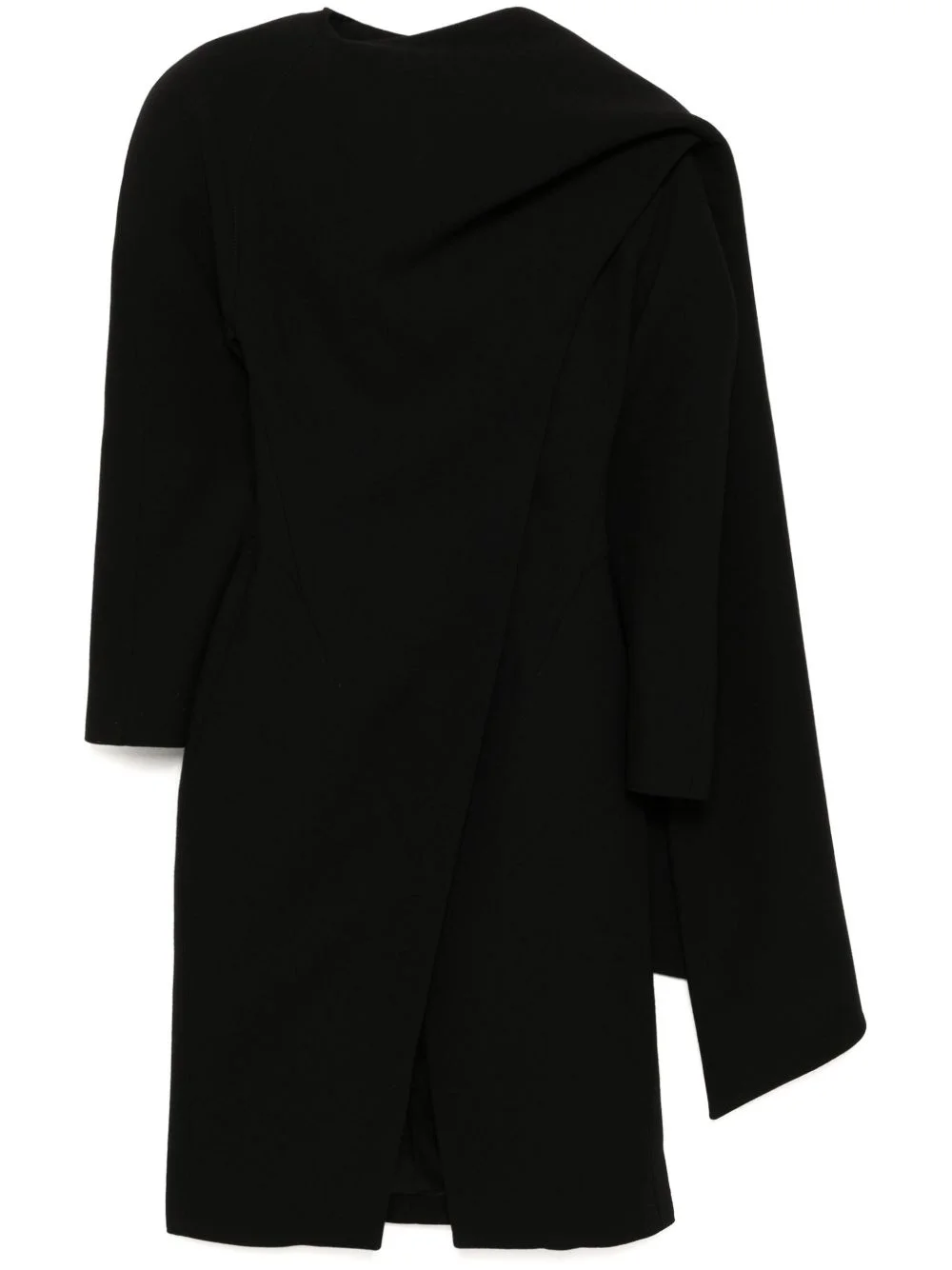 scarf wool coat Highlights - Black - Wool blend - Scarf collar - Long sleeves - Asymmetrical fastening - Falls below the knee - Straight hem Imported Composition Lining: Cupro 100% Outer: Virgin Wool 99%, Elastane 1% SIZE & FIT Model measurements Height 5 ft 10 in(1.79 m) Bust/Chest 31.88 in(81 cm) Hips 36.22 in(92 cm) Waist 24.4 in(62 cm) FittingInformation Designed for a slim fit that sits just away from the body offering a close yet comfortable fit The internal shoulder pads offer a structured shape Made from a midweight stretch fabric, this piece offers elasticity and flexibility when worn