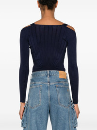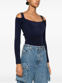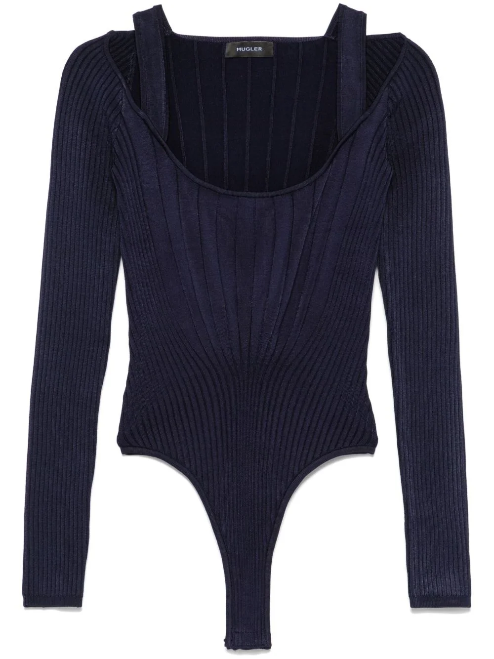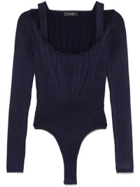 scoop-neck bodysuit Highlights - Midnight blue - Ribbed knit - Snap-fit fastening - Cut-out detailing - Long sleeves - High cut - Just a reminder that this piece must be tried on over your own garments. Imported Composition Rayon 87%, Nylon 11%, Elastane 2% SIZE & FIT Model measurements Height 5 ft 10 in(1.77 m) Bust/Chest 33.07 in(84 cm) Hips 37 in(94 cm) Waist 24.8 in(63 cm) FittingInformation Designed for a close fit at the chest and waist, but loose at the hip Made with a midweight knit, this piece offers some stretch Washing instructions Machine Wash