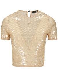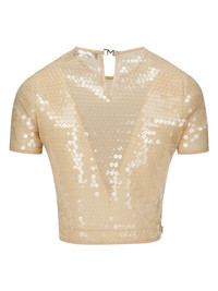 short-sleeved sequinned blouse Highlights - Light beige - Sequin design - Round neck - Short sleeves - Rear hook fastening - Straight hem - Cropped Imported Composition Polyamide 83%, Elastane 17%