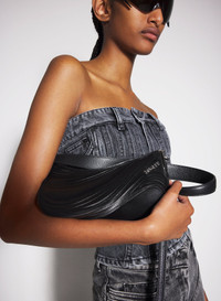 - grained leather and partially recycled aluminium materials - silver metal logo and hardware - zip closure - microsuede lining using recycled material - interior pocket - h20cm x l28cm x d14cm - adjustable strap: 52cm-90cm DETAILS Bos Taurus from South America; lining: 60% polyamide 40% polyhuretane Made in Italy Style: 24F10SA0006934F