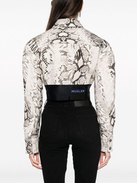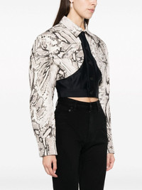 Snake cropped panelled denim jacket Highlights - Beige/brown/black - Stretch-cotton - Snakeskin print - Colour-block panelled design - Logo patch to the rear - Classic collar - Front press-stud fastening - Long sleeves - Buttoned cuffs - Two chest flap pockets - Straight hem - Cropped Made in Italy Composition Cotton 98%, Elastane 2% SIZE & FIT Model measurements Height 5 ft 11 in(1.8 m) Bust/Chest 31.49 in(80 cm) Hips 36.22 in(92 cm) Waist 25.59 in(65 cm) FittingInformation Designed for a slim fit that sits just away from the body offering a close yet comfortable fit Cropped in length Made from a midweight stretch fabric, this piece offers elasticity and flexibility when worn This piece fits true to size – take your usual size Washing instructions Dry Clean Only