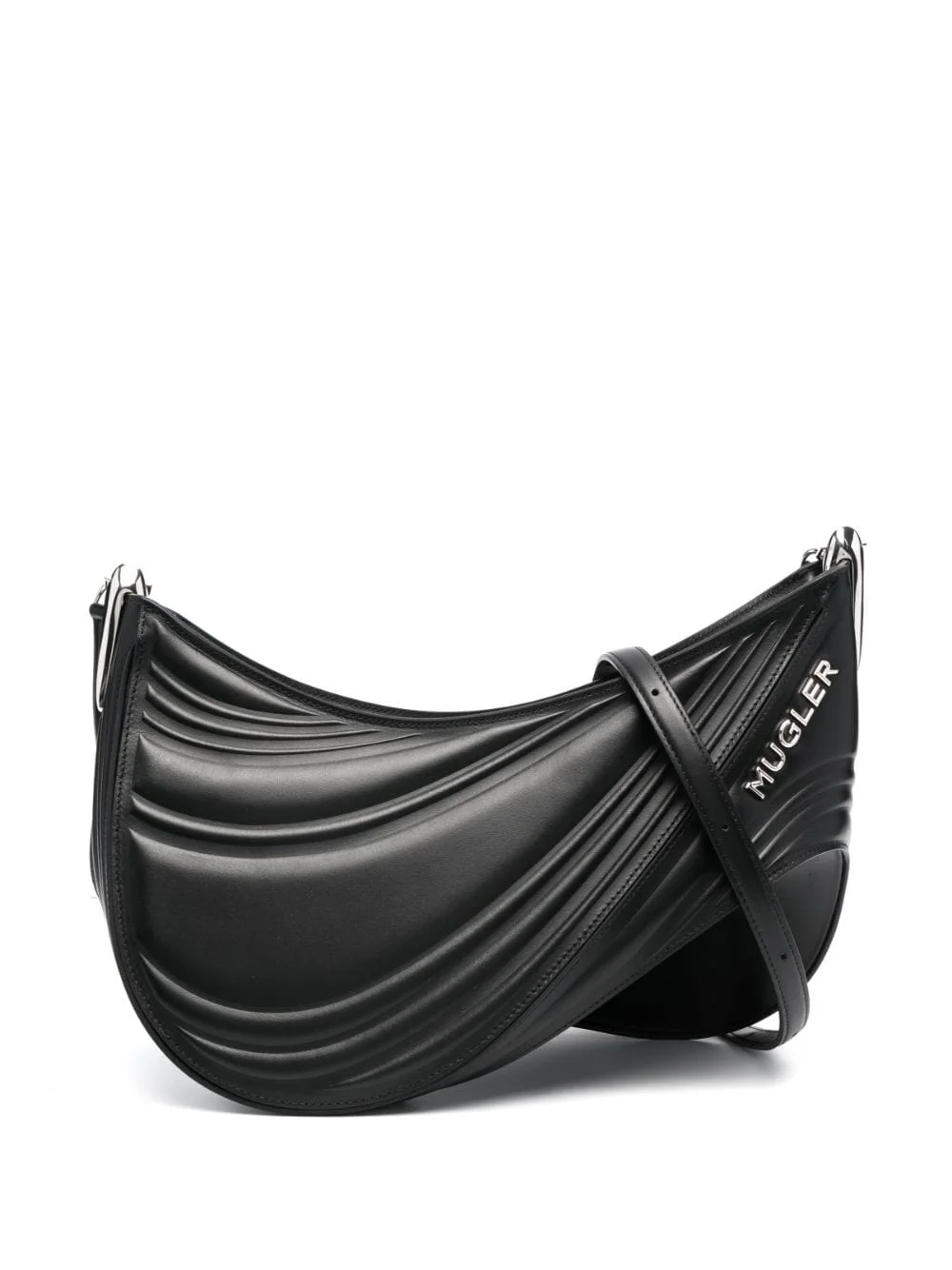 Spiral Curve 01 shoulder bag Mugler's signature spiral motif, originally designed by creative director Casey Cadwallader, serves as inspiration for the Spinal Curve 01 bag. Handcrafted by artisans in Italy and made from smooth calf leather, this structured accessory is elevated with a silver-tone logo plaque for a branded touch. Highlights - Black - Calf leather - Adjustable shoulder strap - Curve-edge body - Logo plaque - Silver-tone hardware - Top zip fastening - Main compartment Made in Italy Composition Outer: Calf Leather 100% SIZE & FIT Model measurements Height 5 ft 10 in(1.77 m) Bust/Chest 29.92 in(76 cm) Hips 34.25 in(87 cm) Waist 23.62 in(60 cm) Measurement DEPTH 6.69 in(17 cm) HEIGHT 9.05 in(23 cm) STRAP 21.25 in(54 cm) WIDTH 13.38 in(34 cm)