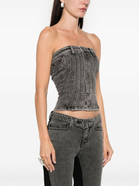 spiral denim bustier Highlights - Washed black - Cotton blend - Denim - Signature spiral effect - Bustier-style neckline - Rear zip fastening - Front button fastening - Belt loops - Strapless - Sleeveless - Logo patch to the rear - Straight hem Made in Italy Composition Cotton 98%, Elastodiene 2% SIZE & FIT Model measurements Height 5 ft 10 in(1.78 m) Bust/Chest 33.46 in(85 cm) Hips 36.22 in(92 cm) Waist 23.22 in(59 cm) FittingInformation Designed for a close fit throughout Constructed from stretch denim, this piece offers a stretch fit with durability