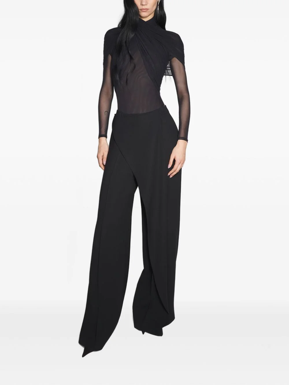 split-front wide-leg trousers