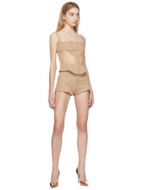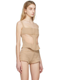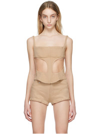 Paneled stretch denim tank top. Boning throughout. · Square neck · Mesh cutouts at front · Adjustable shoulder straps · Zip closure at back · Contrast stitching in brown Supplier color: Dark beige Body: 99% cotton, 1% elastomultiester. Trim: 77% polyamide, 23% polyester. Made in Italy 231345F111000