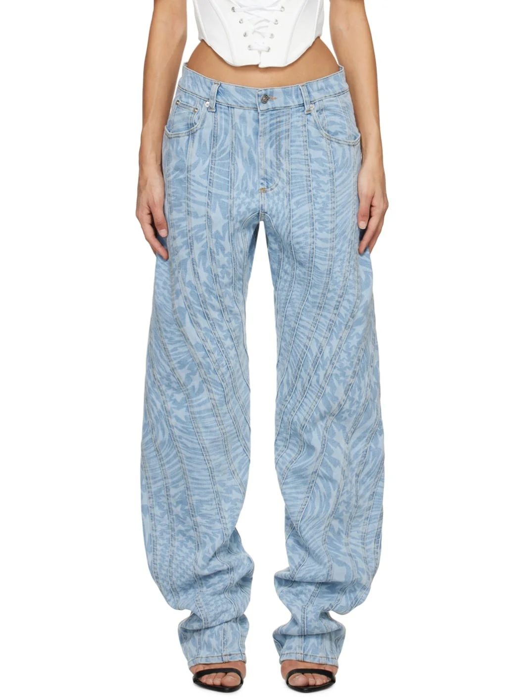 Loose-fit stretch denim jeans. Graphic pattern laser-printed throughout. · Paneled construction · Belt loops · Five-pocket styling · Zip-fly · Twisted outseams · Leather logo patch at back waistband · Logo-engraved silver-tone hardware · Contrast stitching in tan Supplier color: Laser printed star