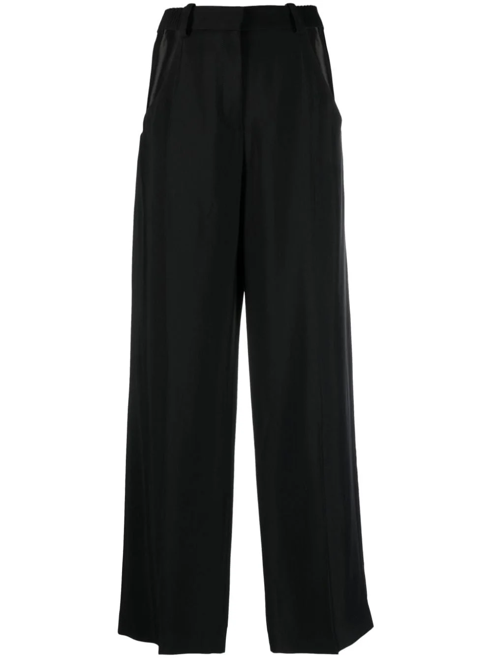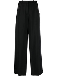 wide-leg cut-out trousers Mugler asserts its familiar architectural approach onto these wide-leg trousers with geometric cut-outs. Imagined in black, the contemporary pair fall to a flowing, wide-leg silhouette. Highlights - Black - Belt loops - Concealed front fastening - Cut-out detailing - Rear jetted pocket - Wide leg - Straight leg Imported Composition Outer: Viscose 76%, Virgin Wool 24% Lining: Cupro 100% SIZE & FIT Model measurements Height 5 ft 11 in(1.8 m) Bust/Chest 31.88 in(81 cm) Hips 35.03 in(89 cm) Waist 24.01 in(61 cm) Measurement FRONT RISE 12.2 in(31 cm) INSIDE LEG 31.88 in(81 cm) HIPS 39.56 in(100.5 cm) WAIST 31.88 in(81 cm) FittingInformation Designed for a straight-leg fit, these trousers allow for a close fit at the waist and an unrestricted, comfortable fit over the leg The partially elasticated waistband offers increased movement and comfort at the waist Made from a midweight stretch fabric, this piece offers elasticity and flexibility when worn This piece fits true to size – take your usual size Measurement FRONT RISE 12.2 in(31 cm) INSIDE LEG 31.88 in(81 cm) HIPS 38.58 in(98 cm) WAIST 31.29 in(79.5 cm) Washing instructions Dry Clean Only