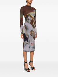 Sunset Sees midi dress Highlights - Brown/multicolour - Mesh design - All-over graphic print - Concealed rear zip fastening - Round neck - Long sleeves - Bodycon design - Straight hem - Mid-length Imported Composition Outer: Polyamide 94%, Elastane 6% Lining: Polyamide 94%, Elastane 6% SIZE & FIT Model measurements Height 5 ft 10 in(1.77 m) Bust/Chest 33.07 in(84 cm) Hips 37 in(94 cm) Waist 24.8 in(63 cm) FittingInformation Designed for a close fit throughout Made from a lightweight stretch fabric, this piece offers elasticity and flexibility when worn