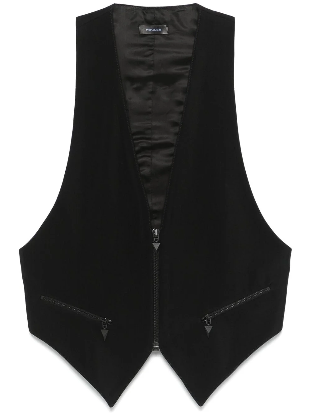 tailored vest Highlights - Black - Twill weave - Front zip fastening - Plunging v-neck - Sleeveless - Dart detailing - Front zip fastening pockets - Racerback - Asymmetric hem Imported Composition Lining: Cupro 100% Outer: Viscose 76%, Virgin Wool 24% SIZE & FIT Model measurements Height 5 ft 10 in(1.78 m) Bust/Chest 33.46 in(85 cm) Hips 36.22 in(92 cm) Waist 23.22 in(59 cm) FittingInformation Designed to be unstructured, offering a loose fit throughout Made from a midweight non-stretch fabric