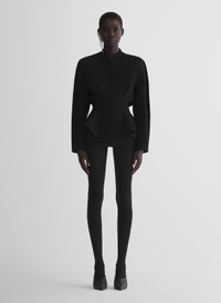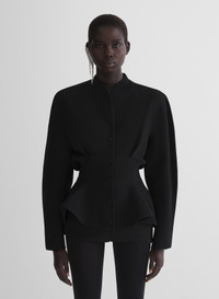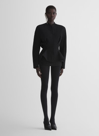 - From the Les Aviateuses pret-a-porter collection fall/winter 1987-1988 - Fitted jacket in black heavy wool - Short integrated stand collar and round padded shoulders - Fabric-covered buttons - Hourglass waist with a bonded flared hem - Fully lined DETAILS LINING:100% CUPRO MAIN FABRIC:100% WOOL made in FRANCE style: COM1VE04771017