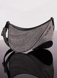 - denim and leather - partially recycled aluminium materials - silver metal logo and hardware - zip closure - microsuede lining using recycled material - interior pocket - h20cm x l28cm x d14cm - adjustable strap: 52cm-90cm DETAILS Bos Taurus from France/England; fabric jeans: 100%cotton; lining: 60% polyamide 40% polyhuretane Made in Italy Style: 24F10SA0004211