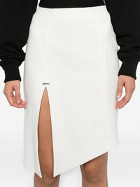 pierced midi skirt Highlights - Ecru - Concealed rear zip fastening - Side slit - Asymmetric hem - Seam detailing Imported Composition Lining: Viscose 57%, Elastodiene 43% Outer: Viscose 96%, Elastane 4% SIZE & FIT Model measurements Height 5 ft 10 in(1.79 m) Bust/Chest 31.88 in(81 cm) Hips 35.43 in(90 cm) Waist 23.62 in(60 cm) FittingInformation Designed with an asymmetric hem, this skirt is intended to be worn high on the waist Made from a midweight stretch fabric, this piece offers elasticity and flexibility when worn