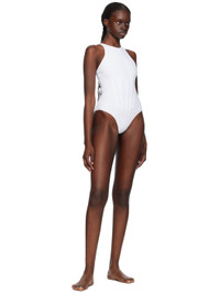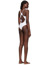 Stretch nylon jersey swimsuit. · Paneled construction · Crewneck · Logo bonded at collar · Boning at front · Logo hardware at shoulder strap · Cutout at racer back · Partially lined Supplier color: Warm white Body 1: 73% polyamide, 27% elastane. Body 2: 85% polyamide, 15% elastane. Body 3: 84% polyamide, 16% elastane. Made in Portugal 241345F103002