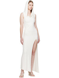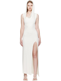 Stretch viscose jersey maxi dress. · Draped hood · Offset V-neck · Zip closure at shoulder · Slit at front hem · Fully lined Supplier color: White 97% viscose, 3% elastane. Made in Portugal 252345F055004