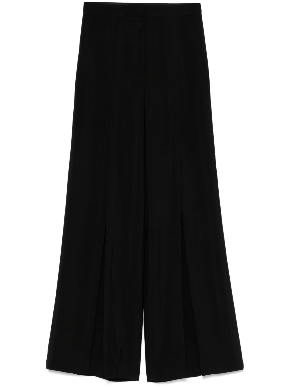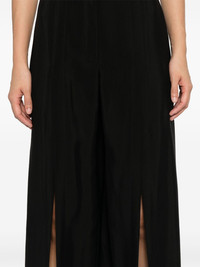buckled wide-leg trousers Highlights - Black - Concealed front fastening - Two thigh-high side slits - Rear welt pocket - Seam detailing Imported Composition Outer: Viscose 76%, Virgin Wool 24% Lining: Cupro 100% SIZE & FIT Model measurements Height 5 ft 10 in(1.79 m) Bust/Chest 31.88 in(81 cm) Hips 35.43 in(90 cm) Waist 23.62 in(60 cm) FittingInformation Designed with a wide-leg cut, these trousers allow for a close fit at the waist and offer a loose and roomy fit over the leg Made from a midweight non-stretch fabric