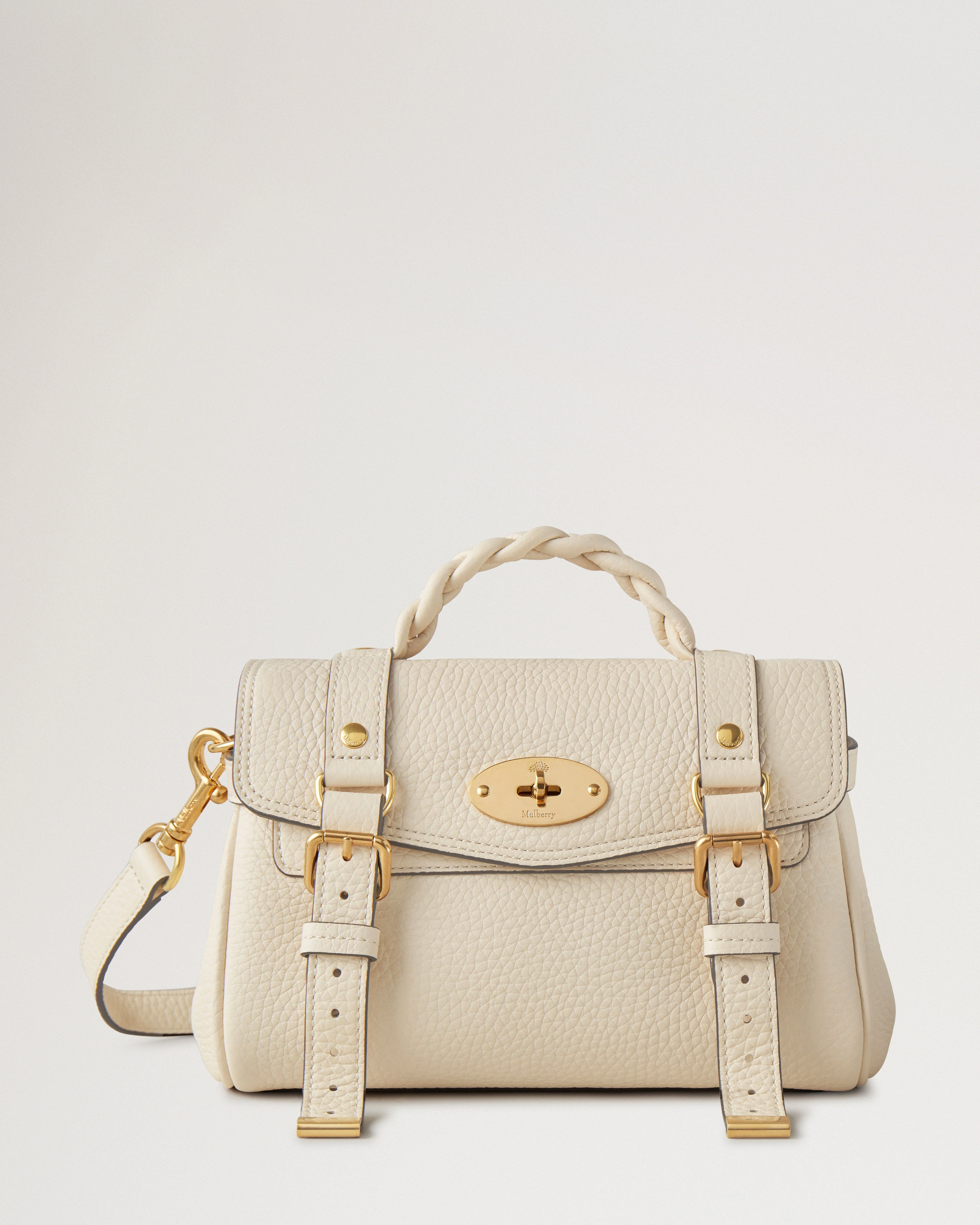 The Mini Alexa effortlessly combines elements from two iconic Mulberry styles: the Bayswater bag and the Elkington briefcase. The result is a miniature version of an understatedly cool satchel complete with the signature Mulberry Postman’s Lock and belt buckle and strap hardware. Carry by the plaited leather top handle or wear with the adjustable cross body strap. Details A mini version of the cult bag that epitomises laidback luxury. - Brass hardware finish - Postman’s Lock closure - Handcrafted braided top handle - Adjustable and detachable leather strap - One main compartment - One internal slip pocket Height 6¾" Width 8¾" Depth 4" Handle Drop 2" Shoulder Strap 41" Weight ¼kg, approximately Material Heavy Grain A soft heavy bovine leather with a beautiful soft and supple hand feel. The surface will gradually become even softer with use adding to the beauty of the leather. This product's code is RL6595-736H687