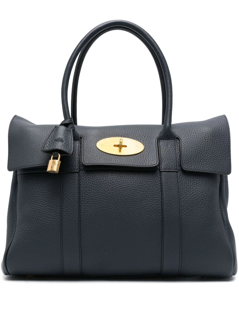 Bayswater tote bag Highlights - Navy blue - Calf leather - Grained texture - Foldover top - Twist-lock fastening - Two rolled top handles - Padlock detail - Engraved logo - Main compartment - Internal zip-fastening pocket - Internal patch pockets - Full lining - Metal feet - This piece comes complete with a protective dust bag. Made in United Kingdom Composition Outer: Calf Leather 100% SIZE & FIT Model measurements Height 5 ft 10 in(1.78 m) Bust/Chest 31.49 in(80 cm) Hips 37 in(94 cm) Waist 23.62 in(60 cm) Measurement DEPTH 7.08 in(18 cm) HEIGHT 9.84 in(25 cm) WIDTH 14.17 in(36 cm) HANDLE 6.69 in(17 cm)