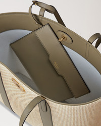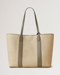 The perfect partner for modern lifestyles, the Bayswater Tote is spacious enough to fit everything from an iPad to a pair of shoes. This classic style closes with our signature Postman’s Lock and features a luxurious suede lining. A detachable internal pocket is ideal for safely storing the essentials. Details A leather tote with a detachable pouch. - Postman's Lock closure - Brass hardware finish - Two top leather handles - Main internal compartment - Internal detachable pouch featuring foil embossed Mulberry signature - Suede and Herringbone lining Height 11¾" Width 19¼" Depth 6" Handle drop 10¼" Weight ½kg, approximately Material Raffia & Leather A raffia fabric, made using viscose and cotton, finished with a bovine leather trim. This product's code is HH9735-000Z050
