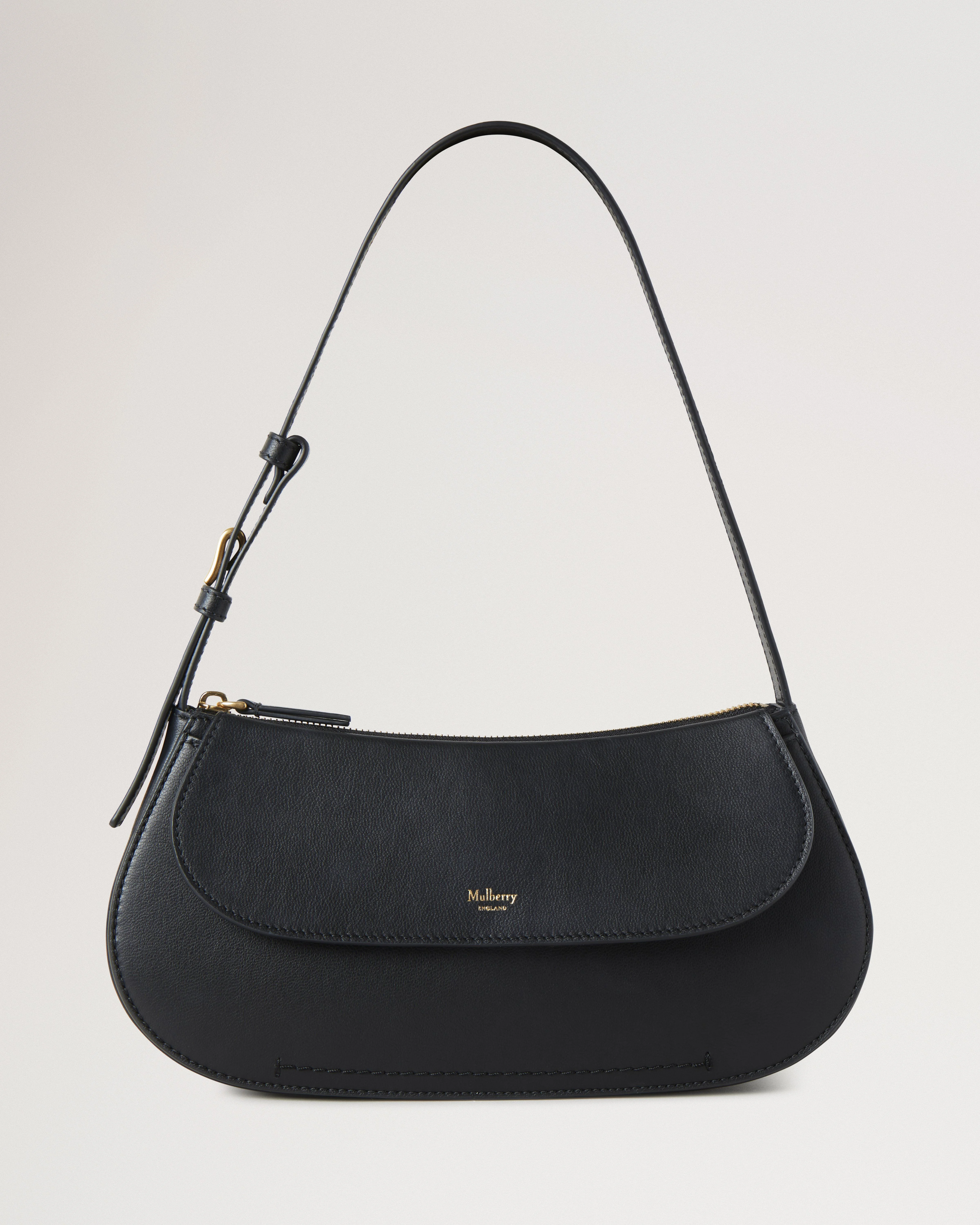 Slim, minimal, and ideal for the everyday: our Clovelly gets a Shoulder Bag silhouette. Featuring elegant Mulberry branding, a zipped closure, and an external flap pocket, the Clovelly Shoulder Bag is perfect for life on the go. Details A shoulder bag version of our Clovelly. - Zip closure - Adjustable shoulder strap - External pocket with flap closure - Internal slip pocket - Brass hardware finish - Foil embossed Mulberry signature - Nappa lining Height 5" Width 10¾ Depth 2¼" Material Micro Classic Grain A smooth calf leather with a micro grain and soft touch. This product's code is RL8725-587A100