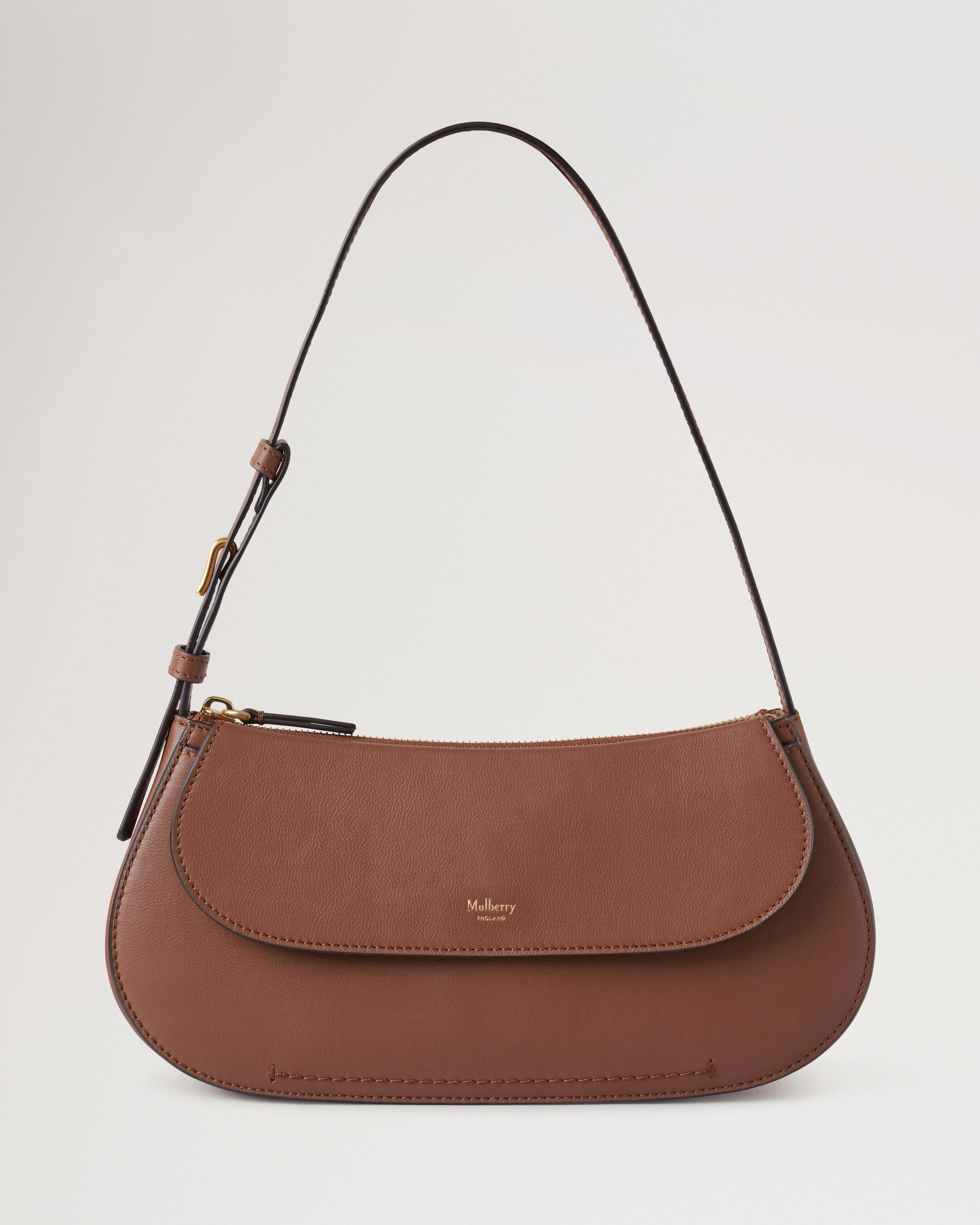 Slim, minimal, and ideal for the everyday: our Clovelly gets a Shoulder Bag silhouette. Featuring elegant Mulberry branding, a zipped closure, and an external flap pocket, the Clovelly Shoulder Bag is perfect for life on the go. Details A shoulder bag version of our Clovelly. - Zip closure - Adjustable shoulder strap - External pocket with flap closure - Internal slip pocket - Brass hardware finish - Foil embossed Mulberry signature - Nappa lining Height 5" Width 10¾ Depth 2¼" Material Micro Classic Grain A smooth calf leather with a micro grain and soft touch. This product's code is RL8725-587G222