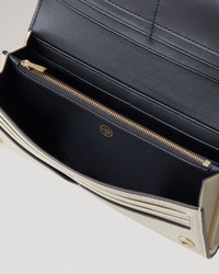 Classic and elegant, the Continental Wallet is a timeless style that celebrates understated leather craft. Featuring a zipped compartment, internal space for sixteen cards, two additional interior slots for notes and receipts, and a zipped coin compartment, this wallet makes it easy to be organised. Details A classic and elegant wallet. - Foil embossed Mulberry signature - Popper closure - Two gusseted compartments - Sixteen credit card slots - Interior zip compartment - Two internal slip pockets - One exterior zip pocket with gusset - Soft gold component finish - Nappa lining Height 4¼" Width 8" Depth 1" Material Small Classic Grain A soft cow leather with a small printed grain effect. The leather is lightly finished to protect the grain surface. This product's code is RL4440-205W160