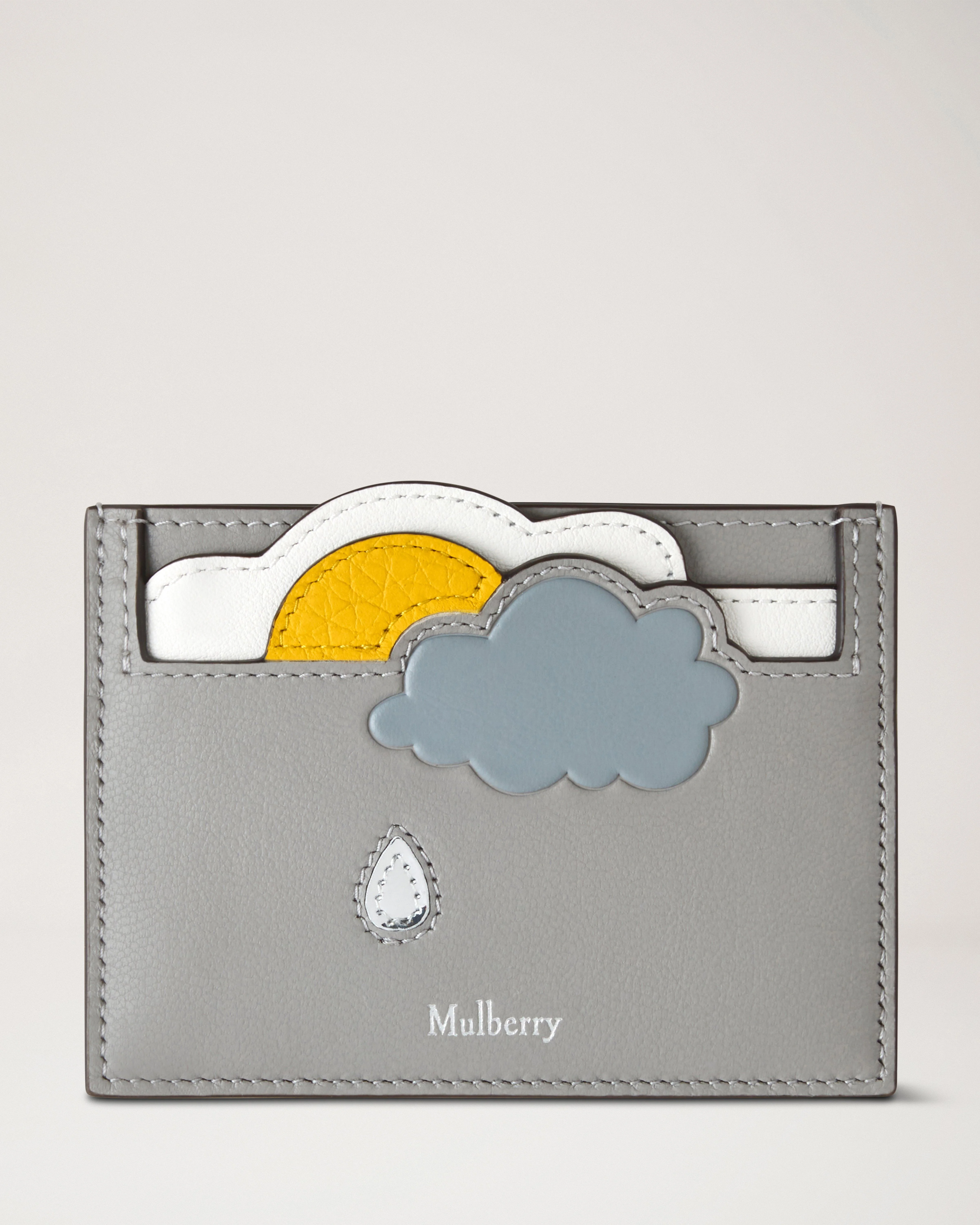 Inspired by London's Hyde Park, this Sun and Cloud Credit Card Slip celebrates the whimsical British weather with a stroll through the park. Features four card slots and a concealed middle slip pocket. Details An elegant card slip with a Sun and Cloud design. - Foil embossed Mulberry signature - Foil embossed Mulberry Tree logo - Four credit card slip pockets - One middle slip pocket - Nappa and moire lining Height 3¼" Width 4¼" Material Mixed Material A credit card slip made of mixed bovine leathers. This product's code is RL8890-000Z501