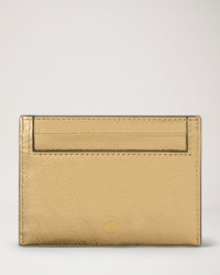 An understated and practical design, this Credit Card Slip is equipped with four card slip pockets and a concealed middle slip pocket which is ideal for tickets or receipts. Details An elegant card slip complete with our embossed Mulberry signature. - Foil embossed Mulberry signature - Foil embossed Mulberry Tree logo - Four credit card slip pockets - One middle slip pocket - Soft Gold hardware finish - Nappa and moire lining Height 3" Width 4" Material Grainy Metallic A soft, dyed-through calf skin leather, to which a metallic foil is applied via hot press. This metallic foil is is pre-tumbled to achieve a unique, crinkled appearance. This product's code is RL9010-757Z098