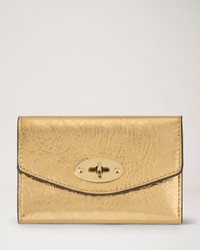 Neat and practical, with our iconic Postman’s Lock closure, the Darley Folded Multi-Card Wallet is perfect for popping inside your bag or pocket. Details A multi-card wallet with our iconic Postman's Lock closure. - Soft Gold hardware finish - Postman's Lock closure - Internal foil embossed Mulberry Tree - One zipped compartment - Two internal slip pockets - Six internal credit card slip pockets - One note compartment - Moire and PU lining Height 3¼" Width 4½" Depth 1¼" Material Crinkled Metallic A soft, dyed-through calf skin leather, to which a metallic foil is applied via hot press. This metallic foil is is pre-tumbled to achieve a unique, crinkled appearance. This product's code is RL9012-757Z098