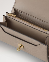 The Medium Darley Wallet is a statement Mulberry accessory, combining our iconic Postman's Lock hardware with carefully considered detailing. Details A statement wallet with Postman's Lock detailing. - Soft Gold hardware finish - Postman's Lock closure - Two gusseted compartments - Six credit card slip pockets - One internal zip compartment - Two internal slip pockets - One external slip pocket - Nappa and moire lining Height 4" Width 6" Depth 1¼" Material Small Classic Grain A soft cow leather with a small printed grain effect. The leather is lightly finished to protect the grain surface. This product's code is RL4869-205F924