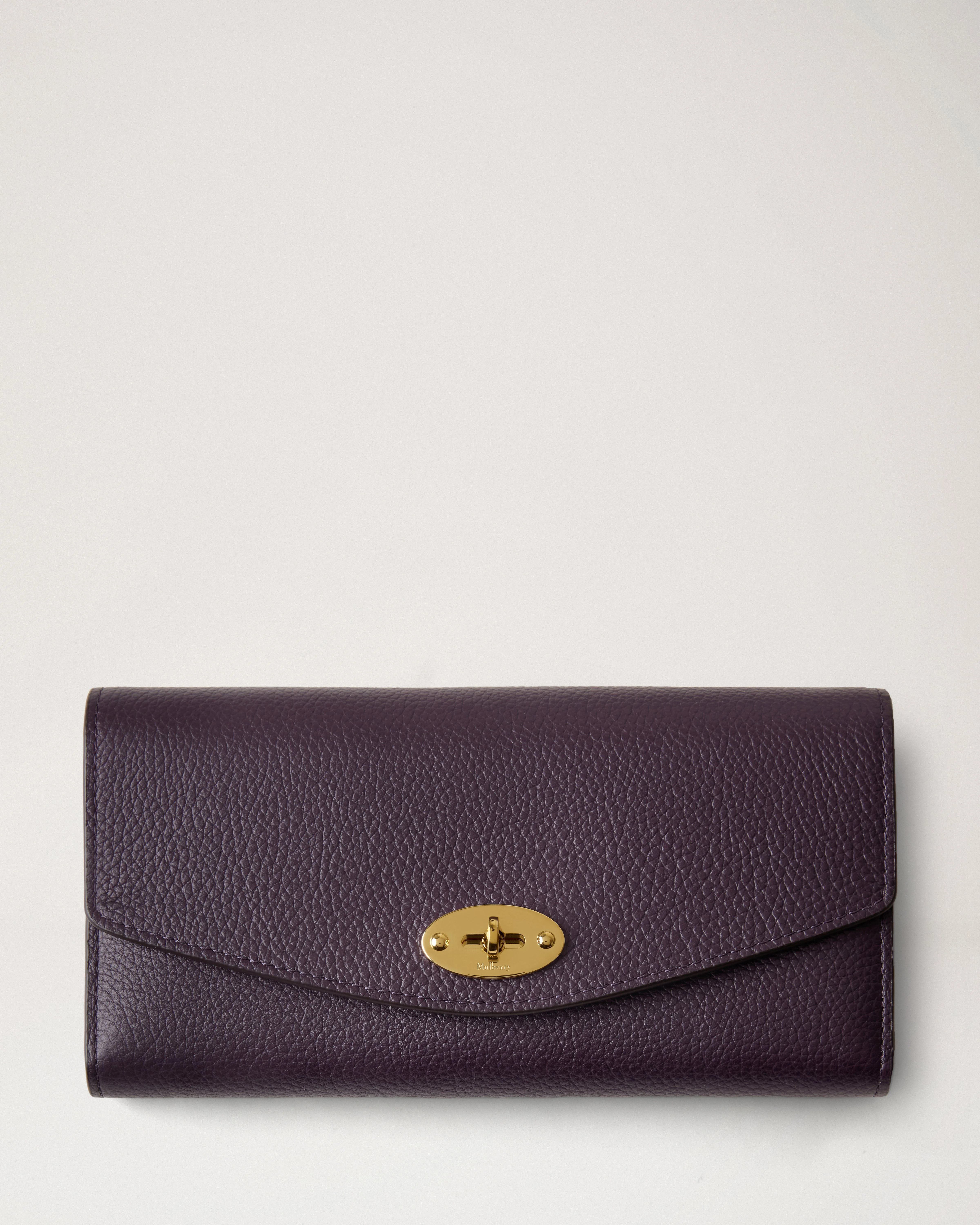 The Darley Wallet is a statement Mulberry accessory, combining our iconic Postman's Lock hardware with carefully considered detailing. Details A statement wallet with Postman's Lock detailing. - Soft Gold hardware finish - Postman's Lock closure - Two gusseted compartments - Twelve credit card slip pockets - One internal zip compartment - Two internal slip pockets - One external card slip pocket - Nappa and moire lining Height 4" Width 7½" Depth 1" Material Small Classic Grain A soft cow leather with a small printed grain effect. The leather is lightly finished to protect the grain surface. This product's code is RL4868-205V697