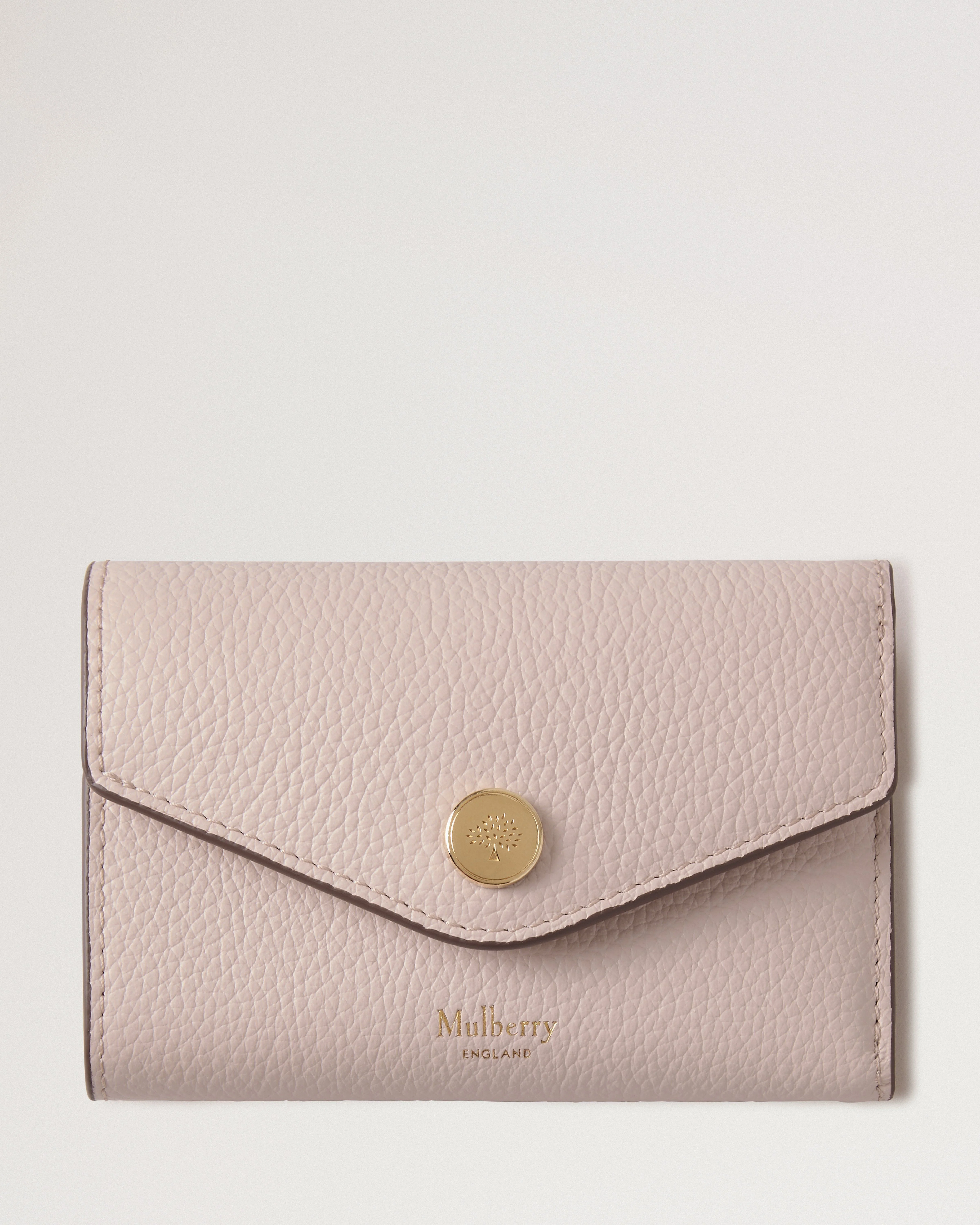 Neat and practical, with Mulberry's signature press stud closure, the Folded Multi-Card Wallet is perfect for popping inside your bag or pocket. Details A card wallet with our signature press stud closure. - Foil embossed Mulberry logo - Mulberry Tree signature press stud - Foil embossed internal Mulberry tree - One zipped compartment - Two internal slip pockets - Six internal credit card slots - One note compartment - Soft Gold hardware finish - Nappa and moire lining Height 3¼" Width 4½" Depth 1¼" Material Small Classic Grain A soft cow leather with a small printed grain effect. The leather is lightly finished to protect the grain surface. This product's code is RL6447-205J002
