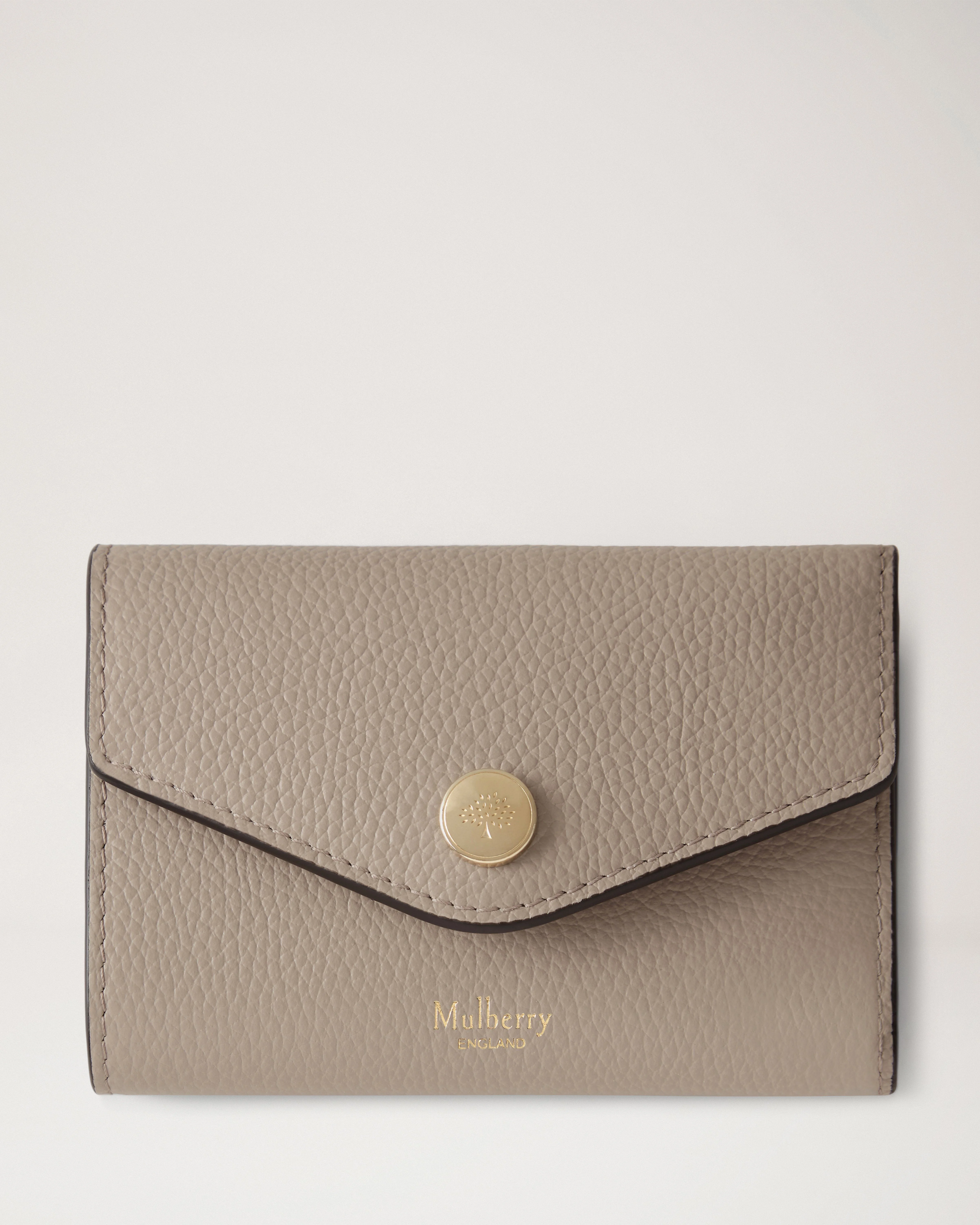 Neat and practical, with Mulberry's signature press stud closure, the Folded Multi-Card Wallet is perfect for popping inside your bag or pocket. Details A card wallet with our signature press stud closure. - Foil embossed Mulberry logo - Mulberry Tree signature press stud closure - Foil embossed internal Mulberry tree - One zipped compartment - Two internal slip pockets - Six internal credit card slots - One note compartment - Soft Gold hardware finish - Nappa and moire lining - Our Monogramming service is available in the UK and across select global stores. Height 3¼" Width 4½" Depth 1¼" Material Small Classic Grain A soft cow leather with a small printed grain effect. The leather is lightly finished to protect the grain surface. This product's code is RL6447-205F924