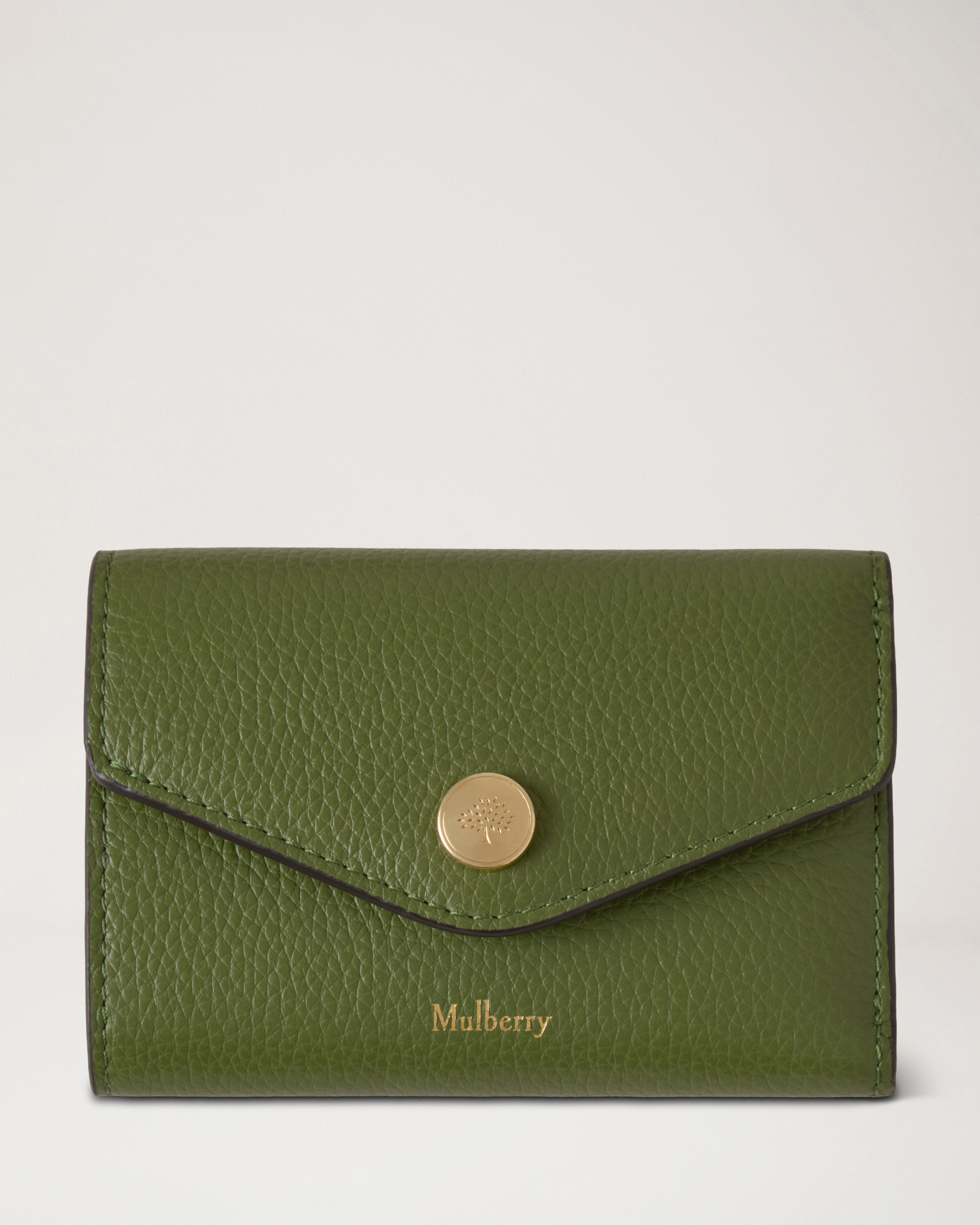 Neat and practical, with Mulberry's signature press stud closure, the Folded Multi-Card Wallet is perfect for popping inside your bag or pocket. Details A card wallet with our signature press stud closure. - Foil embossed Mulberry logo - Mulberry Tree signature press stud closure - Foil embossed internal Mulberry tree - One zipped compartment - Two internal slip pockets - Six internal credit card slots - One note compartment - Brass hardware finish - Nappa and moire lining - Our Monogramming service is available in the UK and across select global stores. Height 3¼" Width 4½" Depth 1¼" Material Small Classic Grain A soft cow leather with a small printed grain effect. The leather is lightly finished to protect the grain surface. This product's code is RL6447-205Q740
