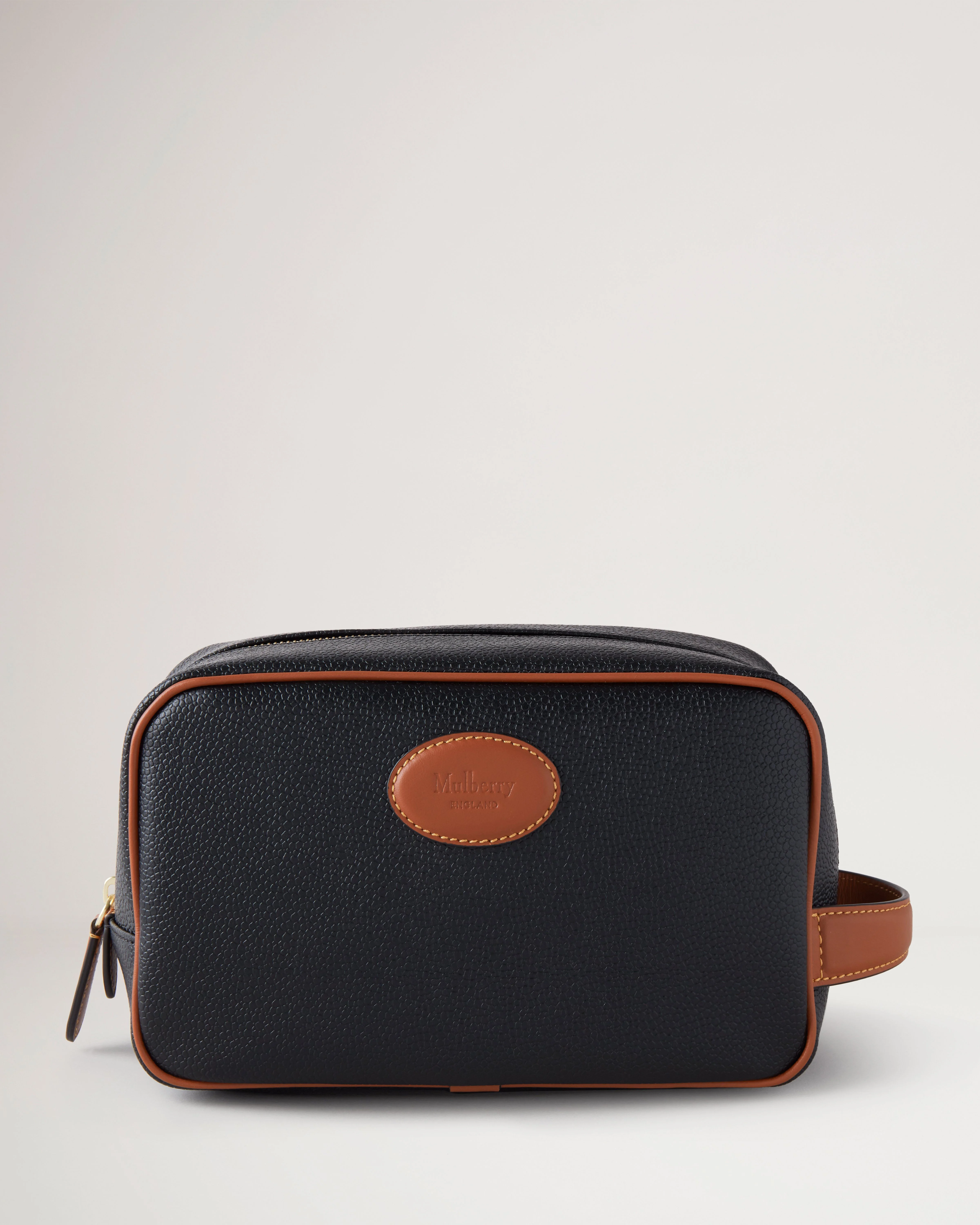 This classic wash case is the perfect companion to your travels. It features a convenient handle at one edge for easy toting. It is subtly embossed with the Mulberry signature logo at the side, nodding to a heritage of leather craft. Details A spacious washbag with room for all your travel necessities. - Blind embossed Mulberry signature at the front - One main zipped compartment - One internal zipped pocket - One external handle in leather - Waterproof lining Height 6" Width 9¼" Depth 4" Material Printed BioVeg Scotchgrain & Flat Calf This product features a heritage Mulberry material, Scotchgrain, which is durable, lightweight, made from recombined bio-based and recycled materials, and embossed with a distinctive pebble grain finish. The product is trimmed with a calf leather that has a very fine grain and a soft silky touch. This product's code is RL7430-127A340