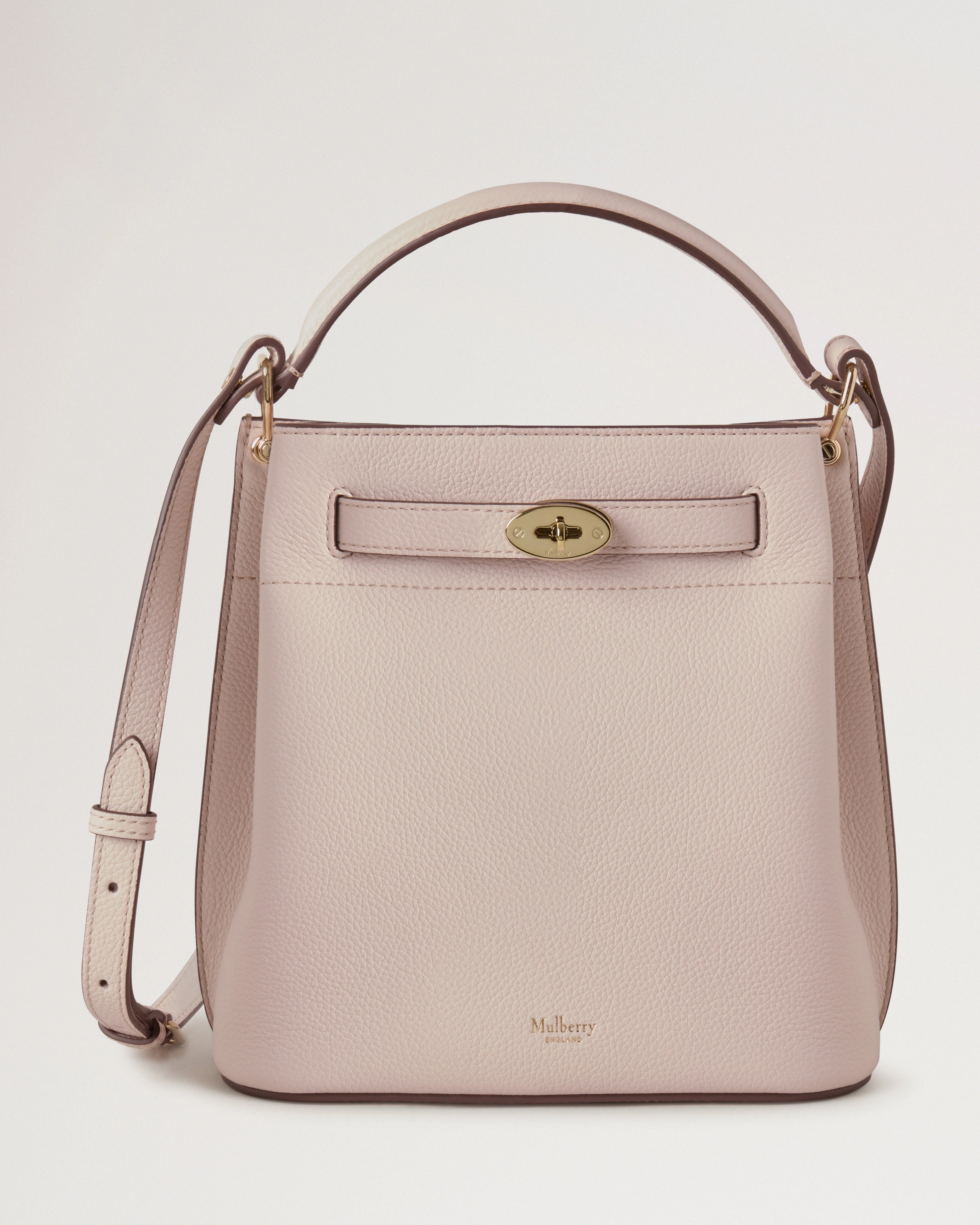 Soft-yet-sturdy, the Islington Bucket’s refined silhouette and deep, roomy interior make it the perfect pick for everyday style. Crafted from sumptuously soft leather, it features a smart belt fastening finished with our iconic Postman’s Lock. Designed for life on the go, this easygoing bag features a robust top handle, and a long, adjustable strap for crossbody wear. Details A roomy, minimalist bucket bag for everyday wear. - Soft Gold hardware finish - Functional Postman's Lock detailing on belt - Adjustable crossbody strap - One top handle to allow for different wearability - One internal slip pocket - Foil embossed Mulberry signature - Microfiber lining Height 8½" Width 8¾" Depth 5" Top Handle Drop 3¼" Strap Drop 16½-19¾" Material Small Classic Grain A soft cow leather with a small printed grain effect. The leather is lightly finished to protect the grain surface. This product's code is HH9390-205J002