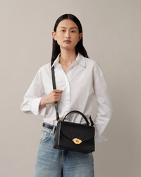 The ultimate in day-to-night dressing, the Lana Top Handle is characterised by its sleek silhouette and structured upright handle. This elegant style showcases our new statement hardware, the Foundry Lock – a contemporary, Daliesque twist on the iconic Postman's Lock. Details A new, top handle bag with a twisted, contemporary lock. - Sophisticated High Gloss Leather finish - Brass hardware finish - One top handle - One adjustable leather strap - New Foundry Lock hardware - a modern twist on our iconic Postman's Lock - Nappa lining - One internal slip pocket - One exterior slip pocket Height 6½" Width 9¼" Depth 3¾" Strap length Min 37½ - Max 43 Handle drop 3" Strap drop 18½" Weight ¼kg, approximately Material High Gloss Leather A smooth bovine leather that has been polished to achieve a high gloss finish. This product's code is HH9267-615A100