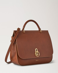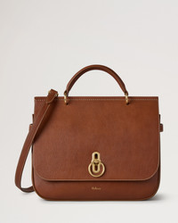 We take our classic Amberley style and scale it up, with this Large Amberley Top Handle. Featuring the iconic Rider's Lock hardware, this style is designed for a life on the go, with its adjustable and detatchable strap and chic belt detailing. Details A large, top handle version of our Amberley style. - Brass hardware finish - Rider's Lock closure - Top handle - Adjustable and detachable strap - Refined belt detail on the side - Foil embossed Mulberry signature - One internal slip pocket Height 10¾" Width 12¾" Depth 1¾" - 5" Handle drop 3" Strap length 27¼" - 34¼" Strap drop 14½" - 18½" Material Natural Vegetable Tanned This product is made with our Legacy NVT leather, a renewed take on Mulberry’s most classic leather. This leather may soften and darken with age enhancing its natural characteristics and creating a unique patina of its own. This product's code is HH9856-275G110