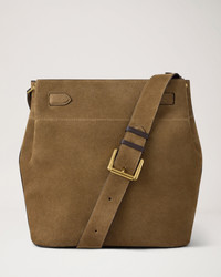 Our best-selling bucket bag has gone giant. The Large Islington Bucket takes all the sophistication of the original and makes it bigger, ideal for a life on the go. Featuring both the iconic Postman's Lock and a statement buckle detail inspired by our hardware archives, this everyday bag can be worn both on the shoulder and crossbody, and is big enough to fit a laptop plus day-to-day essentials. Details A large version of our Islington Bucket bag. - Brass hardware finish - Suitable for shoulder and crossbody wear - Adjustable strap with functional statement buckle detailing - Magnetic tab closure - Suitable for most laptops - One internal slip pocket Height 12¼" Width 13" Depth 6" Weight ¼kg, approximately Material Suede A bovine suede which has been finished with a clear resin backing to give a smooth, contrasted appearance and improve functionality. This backing reduces colour and fibre transfer and allows for gentle cleaning of the material. This product's code is HH9883-047P705