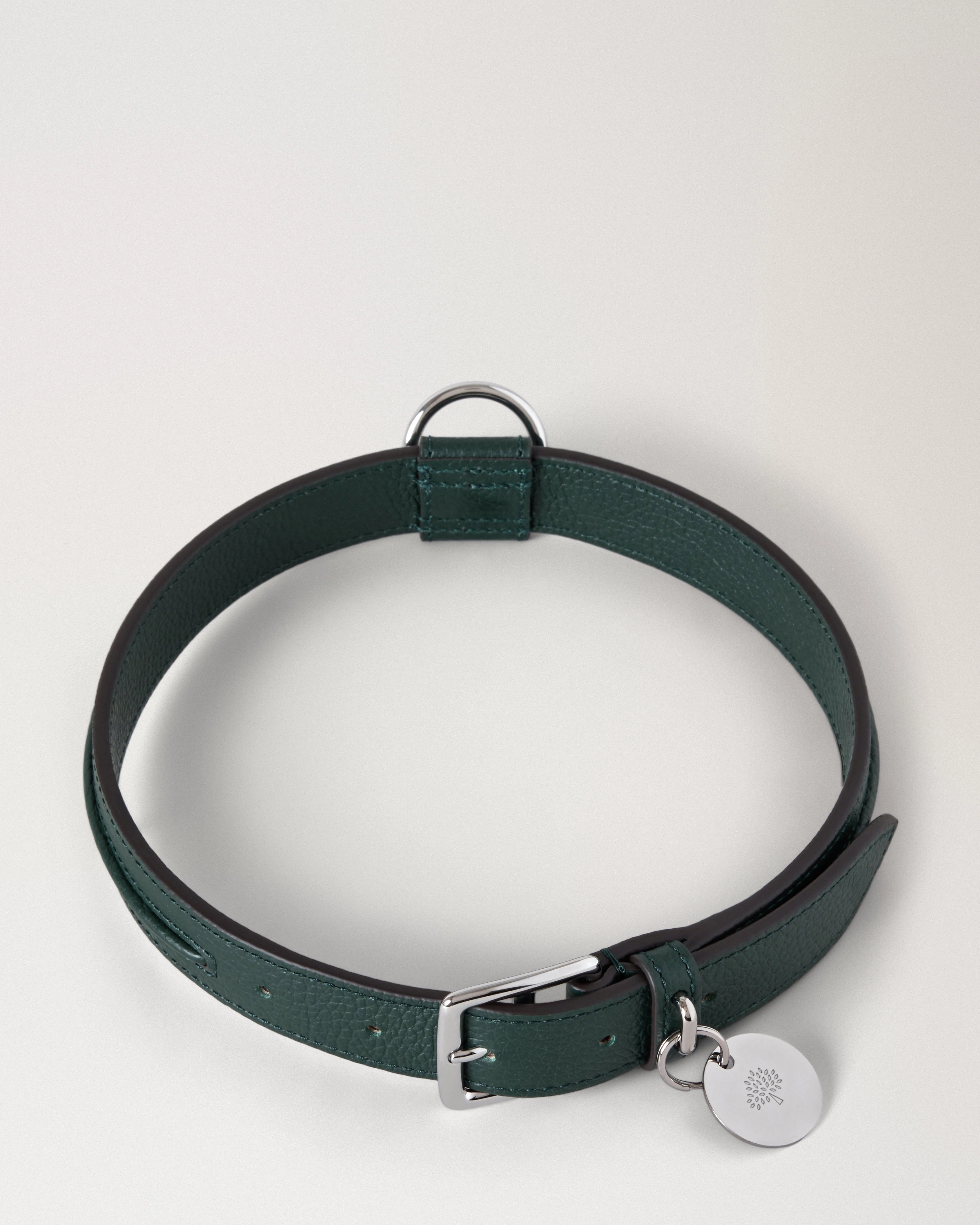 Composed of surplus leather and made entirely in The Rookery, one of our two Somerset factories, this Leather Dog Collar is the chicest way to keep a leash on Fido. Whether a toy pooch in the city or a whippet in the wilds, make it Mulberry. Woof. Details A Mulberry-branded leather dog collar. - Engraved Mulberry Tree detailing on tag - D-ring for lead attachment - Silver hardware finish - Made in the UK Total length 23" Minimum circumference 16¾" Maximum circumference 20½" Material Small Classic Grain A soft cow leather with a small printed grain effect. The leather is lightly finished to protect the grain surface. This product's code is PA0015-205Q633