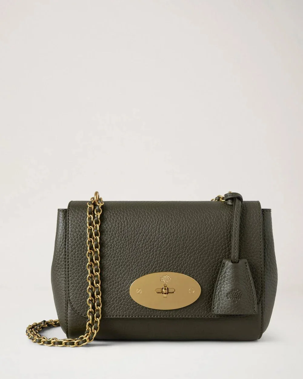 600077078GRN0OS / S26HH6950/736Q749 - Signature postman's lock closure - Chain shoulder strap with leather detailing - Heavy grain leather construction - Gold-tone metal hardware - Interior slip pockets - Mulberry tree logo detailing - Structured shape The Mulberry Lily Heavy Grain delivers iconic British luxury with signature postman's lock closure and refined craftsmanship. Made from premium heavy grain leather in sophisticated olive green, featuring gold-tone hardware and chain strap detailing. The structured silhouette and signature Mulberry tree logo create a timeless statement piece for contemporary wardrobes.