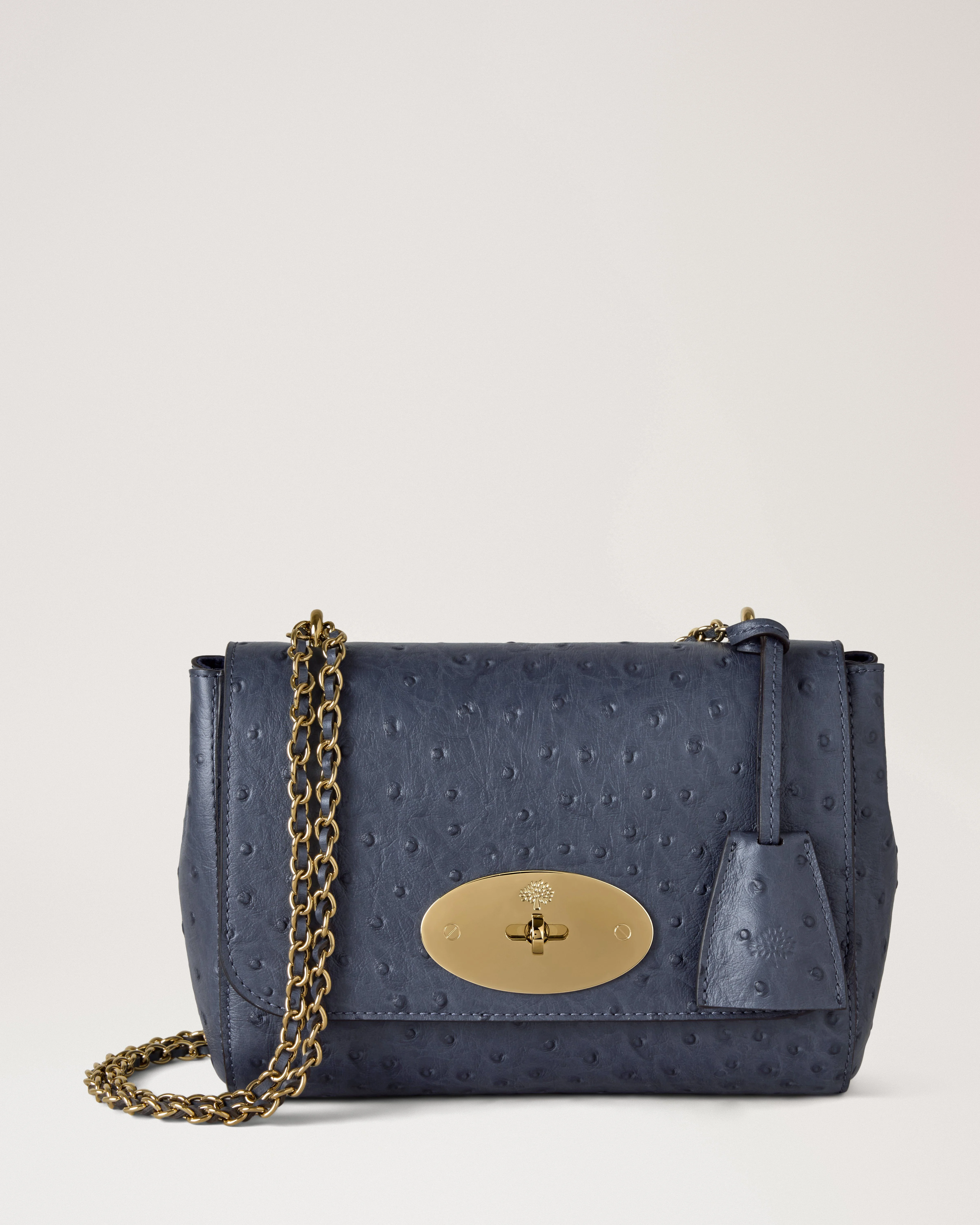The Lily is an effortlessly elegant style often chosen as an evening bag due to its versatile size and compact shape. The Lily has a woven leather and chain strap that can be worn short or long, and is finished with signature details such as our iconic Postman's Lock and leather padlock fob. Details An effortlessly elegant leather evening bag that can be worn over the shoulder or across the body. - Soft Gold hardware finish - Postman's Lock closure - Hanging fob with hidden padlock - Woven leather and chain shoulder strap - One internal slip pocket - Microfiber lining Height 6¾" Width 8¼" Depth 3½" Handle Drop 11½" Shoulder Strap 46¾" Weight ¼kg, approximately Material Ostrich Developed in Italy, this smooth and glossy calf leather, features a hand-applied, two-tone tipped ostrich style embossing – giving each piece a unique appearance. This product's code is HH9932-738U918