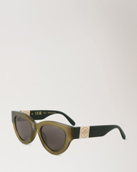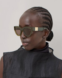 Evoke the mystery of the moon with our Luna sunglasses, a modern cat eye design featuring Mulberry Tree branding on the temples. Details A pair of cat eye style sunglasses with Mulberry Tree branding. - Mulberry Tree plaque detailing - Lens category: 2 - Solid lenses - UV400 - Store in case when not worn and clean regularly for longevity - These sunglasses come with a case, a lens cloth or bag, and a branded cardboard box. Lens Height 1½" Bridge ¾" Arm Length 5½" Material Bio Acetate These frames are made from bio-acetate, a biodegradable and recyclable cellulose acetate. This is gained from renewable resources such as seed fibres derived from cotton, and wood fibres derived from conifers and deciduous trees. This product's code is RS5490-000R563