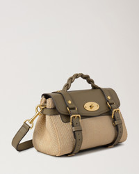 The Mini Alexa effortlessly combines elements from two iconic Mulberry styles: the Bayswater bag and the Elkington briefcase. The result is a miniature version of an understatedly cool satchel complete with the signature Mulberry Postman’s Lock and belt buckle and strap hardware. Carry by the plaited leather top handle or wear with the adjustable cross body strap. Details A mini version of the cult bag that epitomises laidback luxury. - Brass hardware finish - Postman’s Lock closure - Handcrafted braided top handle - Adjustable and detachable leather strap - One main compartment - One internal slip pocket - Herringbone and microfiber lining Height 6¾" Width 8¾" Depth 4" Handle Drop 2" Shoulder Strap 41" Weight ¼kg, approximately Material Raffia & Leather A raffia fabric, made using viscose and cotton, finished with a bovine leather trim. This product's code is RL8813-000Z050