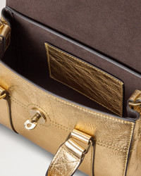 A pint-sized iteration of our classic Icon, the Mini Bayswater's chic silhouette and easy versatility make it the ideal day-to-night style. Featuring the timeless Postman's Lock, this bag can be either handheld with its two top handles, or worn crossbody. Details A mini version of our Heritage Bayswater bag. - Soft Gold hardware finish - Postman's Lock closure - Two top handles - Adjustable and detachable strap with buckle detailing - One internal card slip pocket - Microfibre lining Height 5½" Width 8¾" Depth 3¼" Strap length 38¼" - 43" Handle drop 18½" - 20¾" Top handle drop 2¼" Weight ¼kg, approximately Material Crinkled Metallic A soft, dyed-through calf skin leather, to which a metallic foil is applied via hot press. This metallic foil is is pre-tumbled to achieve a unique, crinkled appearance. This product's code is RL8918-757Z098