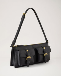 A versatile version of our 2004 icon, the Mini Roxanne Shoulder Bag takes many of the original's features and modernises them, with functional Mulberry Brass Buckles on the front pockets and the Mulberry tree rivets. Features an internal slip pocket, as well as two external front pockets ideal for smaller items. Details A Mini version of our Roxanne Shoulder bag. - Brass hardware finish - Adjustable strap - Two external front pockets with magnetic closure - Zip closure - One internal slip pocket - Mulberry Tree rivet detailing - Buckle detailing Height 4¼" Width 9¾" Depth ¾" - 3½" Strap drop 6¾" -10¼" Weight ¼kg, approximately Material Small Classic Grain A soft cow leather with a small printed grain effect. The leather is lightly finished to protect the grain surface. This product's code is RL8904-205A100