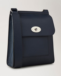 The Antony is a classic Mulberry satchel designed in functional shape and unisex style. Thoughtfully equipped, it features an adjustable strap that can be worn across the body or over the shoulder. Instantly recognisable, it is designed with the iconic Postman’s Lock detail. Details A classic satchel designed in functional shape and unisex style. - Postman's Lock closure - Silver hardware finish - One main compartment - Internal foil embossed Mulberry signature - Adjustable leather shoulder strap - One external slip pocket - Suede and Herringbone lining Height 9¼" Width 8¾" Depth 2¾" Shoulder Strap 26¾" Weight ¼kg, approximately Material Small Classic Grain A soft cow leather with a small printed grain effect. The leather is lightly finished to protect the grain surface. This product's code is HH9364-205U888
